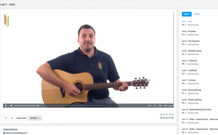 Jij kunt binnen 8 weken gitaar leren spelen met onze bewezen methode. Met de online cursus Gitaar&Aanbidding kan jij, waar en wanneer je maar wilt, gitaarlessen volgen. Deze lessen zijn speciaal gemaakt om je aanbiddingsnummers en opwekkingsliederen te leren spelen op je gitaar. Zonder noten te lezen leer jij op een praktische manier gitaar spelen.